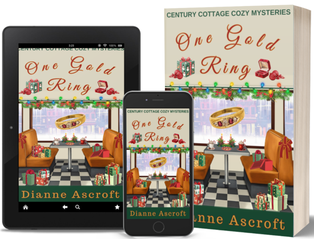 One Gold Ring is a holiday-themed novella set in the fictional small Canadian town of Fenwater and part of author Dianne Ascroft’s delightful Century Cottage Cozy Mystery series. When Marge Kirkwood carelessly leaves Bruce Murray’s family heirloom, a vintage diamond and ruby gold engagement ring, lying unattended at their table at the local diner, it tragically goes missing just as the ring’s intended recipient, Marge’s best friend, Lois Stone, arrives to join them for breakfast. Frantic to recover the ring without spoiling the surprise of his upcoming yuletide proposal, Bruce and Marge go to great lengths tracking down possible suspects who had access to the ring, with Lois helping them every step of the way.