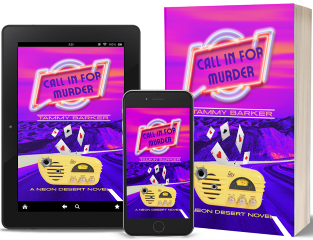 Call In For Murder is the first book in Tammy Barker’s new Neon Desert cozy mystery series featuring radio talk show host Ashley Compton, Miss LARE (love and relationship expert) to her listeners, who offers blunt, straightforward opinions on their relationship and personal communication matters. When one of her listeners is murdered soon after calling in for advice about her cheating spouse, Ashley is overcome with worry and guilt that her advice to the woman may have gotten her killed. She ignores her usually practical inclinations and decides to investigate on her own.