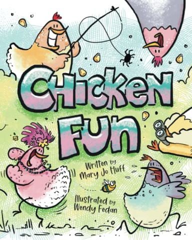 Chicken Fun by Mary Jo Huff and illustrated by Wendy Fedan gives readers exactly what the title says: Chicken Fun, and that fun is for the cartoon chickens and readers as they smile their way through the ten chickens' antics. With bright colors, clever rhymes, and delightful drawings that magically portray the flock's energetic movements, readers of all ages will find something to enjoy.