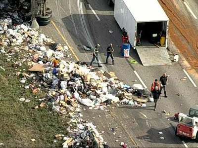 Semi hauling trash overturns on I-20 in Dallas, leading to miles of traffic backup CBS Dallas-Ft. Worth 12/19 7:06A Steven Rosenbaum